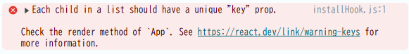 以下はIDが付与されていないコード。当然コンソールには「installHook.js:1 Each child in a list should have a unique “key” prop.」のエラーが出ています。